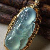 老坑料冰种大势至菩萨翡翠吊坠