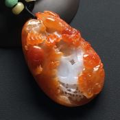 巧雕红翡 麒麟献瑞挂件 尺寸:56-35-15毫米
