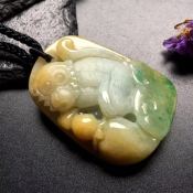 黄加绿灵猴翡翠吊坠 尺寸: 47.5-35.5-13mm