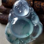 高冰飘花逍遥佛翡翠吊坠 尺寸41*34.5*7.5