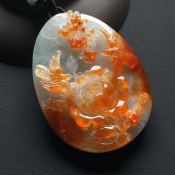 巧雕红翡花开富贵 翡翠吊坠 尺寸:56-41-11毫米