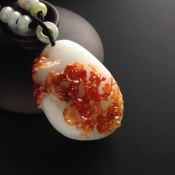 巧雕红翡鸟语花香翡翠吊坠 尺寸52-42-15毫米