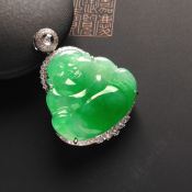 冰种阳绿佛公翡翠吊坠 18K白金配真钻镶嵌 裸石23-25-2.5毫米 连金35-25-7毫米