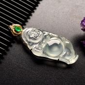 冰种晴水逍遥佛翡翠吊坠 真金镶嵌 总尺寸: 46-18.5-7mm 裸石尺寸: 37-17.5-5mm