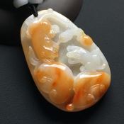 巧雕黄加绿喜上眉梢 翡翠吊坠 尺寸:66-44-15.5毫米