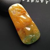 冰种黄加绿 大好河山翡翠吊坠 尺寸62-27-5毫米