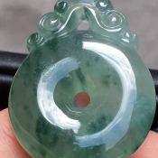 冰种飘花翡翠平安扣吊坠 饱满种老飘花灵动起光