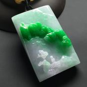 冰种飘绿 大好河山翡翠吊坠 尺寸:51-31.8-12.5毫米