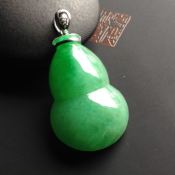 糯冰种阳绿翡翠吊坠 福禄翡翠吊坠