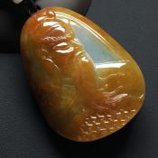 巧雕黄加绿 翡翠挂件 尺寸63-42-7mm