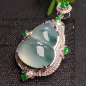 冰种飘花翡翠吊坠 翡翠葫芦吊坠 尺寸:38*23*11