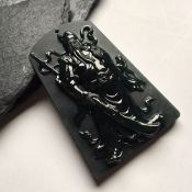 墨翠关公 翡翠挂件 尺寸: 59-41-10mm