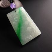 冰种飘花山水牌 翡翠挂件 尺寸48-44-6mm