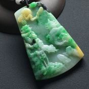 巧雕黄加绿大好河山 翡翠吊坠 尺寸:61-41-6.8毫米