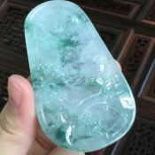 冰糯种飘花山水牌翡翠吊坠 尺寸74.8*43*3.8、克重22.72