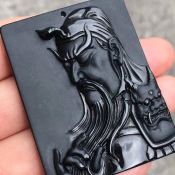 冰种墨翠 大关公挂件 尺寸:50.8-40-7.7