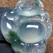 冰飘花布袋佛 翡翠吊坠 完美饱满 种老细腻
