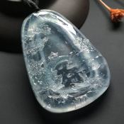 冰种飘绿花山水牌 翡翠吊坠 尺寸63-44-7.5毫米