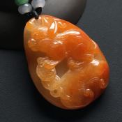 巧雕红翡 玉兔呈祥吊坠 尺寸:51-38-12.5毫米