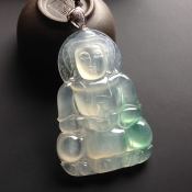 冰种飘绿翠观音 翡翠挂件 尺寸58-39-7mm