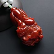 巧雕红翡百财翡翠吊坠 尺寸61-32-20毫米
