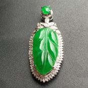 正阳绿叶子 翡翠挂件 裸石尺寸:20.7*10.7*3.3
