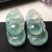 冰种自在佛公一对 翡翠挂件