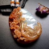 巧雕黄加绿花鸟 翡翠吊坠 尺寸62-37-24毫米