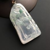 冰种飘花山水牌翡翠挂件 尺寸49-26-7毫米