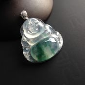 冰种飘花佛公 翡翠吊坠 裸石尺寸33-30-6.5毫米