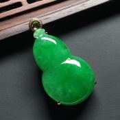 糯冰种满绿 葫芦翡翠吊坠 18k金镶嵌 尺寸:34.8-18-7.7*裸石30-18-5毫米