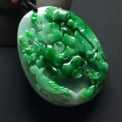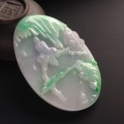 巧雕带色鸟语花香翡翠吊坠 尺寸:60-46-14.7毫米