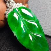 冰阳绿叶子 翡翠挂件 裸石尺寸40*21*4