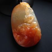 巧雕红翡朝拜 翡翠吊坠 尺寸64-49-16毫米