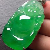 冰阳绿布袋佛 佛翡翠吊坠 尺寸38.8*23*4整体45.8*23.2*9.8