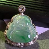 冰种飘绿佛公 翡翠吊坠 冰透起光 色泽鲜艳
