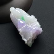 冰飘花叶子 翡翠挂件 尺寸:53-31-7mm