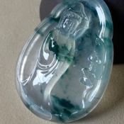 玻璃种飘蓝花观音 翡翠挂件 尺寸45.7*32.5*7.5