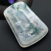 冰种飘花大好河山翡翠吊坠 尺寸:62-45-7.2毫米