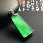 冰种满色无事牌翡翠吊坠 尺寸33-17.4-4.3