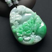 巧雕带色鸟语花香翡翠吊坠 尺寸:60-44-11.5毫米