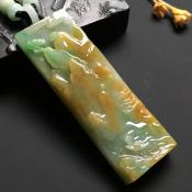 黄加绿山水牌 翡翠吊坠 尺寸72-24-8.5毫米