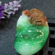 巧雕带色悠然自得翡翠吊坠 尺寸:52-8.8毫米