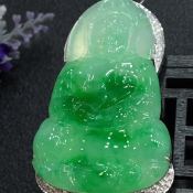 冰绿大葫芦 翡翠吊坠 冰地光泽
