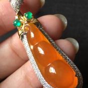 冰种黄翡翡翠吊坠 真金真钻镶嵌
