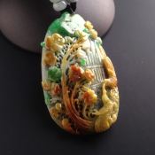 巧雕黄加绿喜上眉梢 翡翠吊坠 尺寸57-33-12毫米