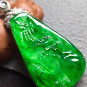 冰阳绿山水翡翠吊坠 尺寸42.8*26*3整体54*26.5*8