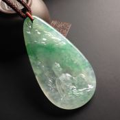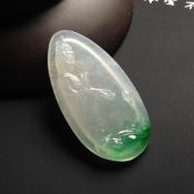 冰种飘绿松下会友翡翠吊坠 尺寸53-7毫米