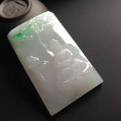 冰糯种飘花山水牌翡翠吊坠 尺寸62-47-6毫米