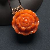 巧雕红翡花开富贵 翡翠吊坠 裸石尺寸:22-23.5-11毫米